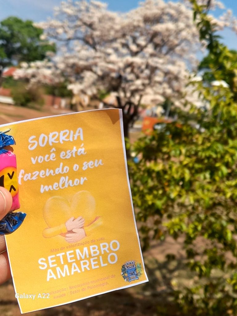 O Setembro Amarelo é o mês dedicado à valorização da vida e à conscientização sobre a importância do cuidado com a saúde mental. Diante das inúmeras atividades desenvolvidas pela Secretaria de Saúde no mês de Setembro, foi realizado na ESF Vila Ferreira uma roda de conversa sobre saúde mental com espaço para diálogo, escuta e reflexão. Na oportunidade, a equipe organizou a distribuição de materiais de conscientização sobre prevenção do suicídio e valorização da vida nas ruas da cidade.